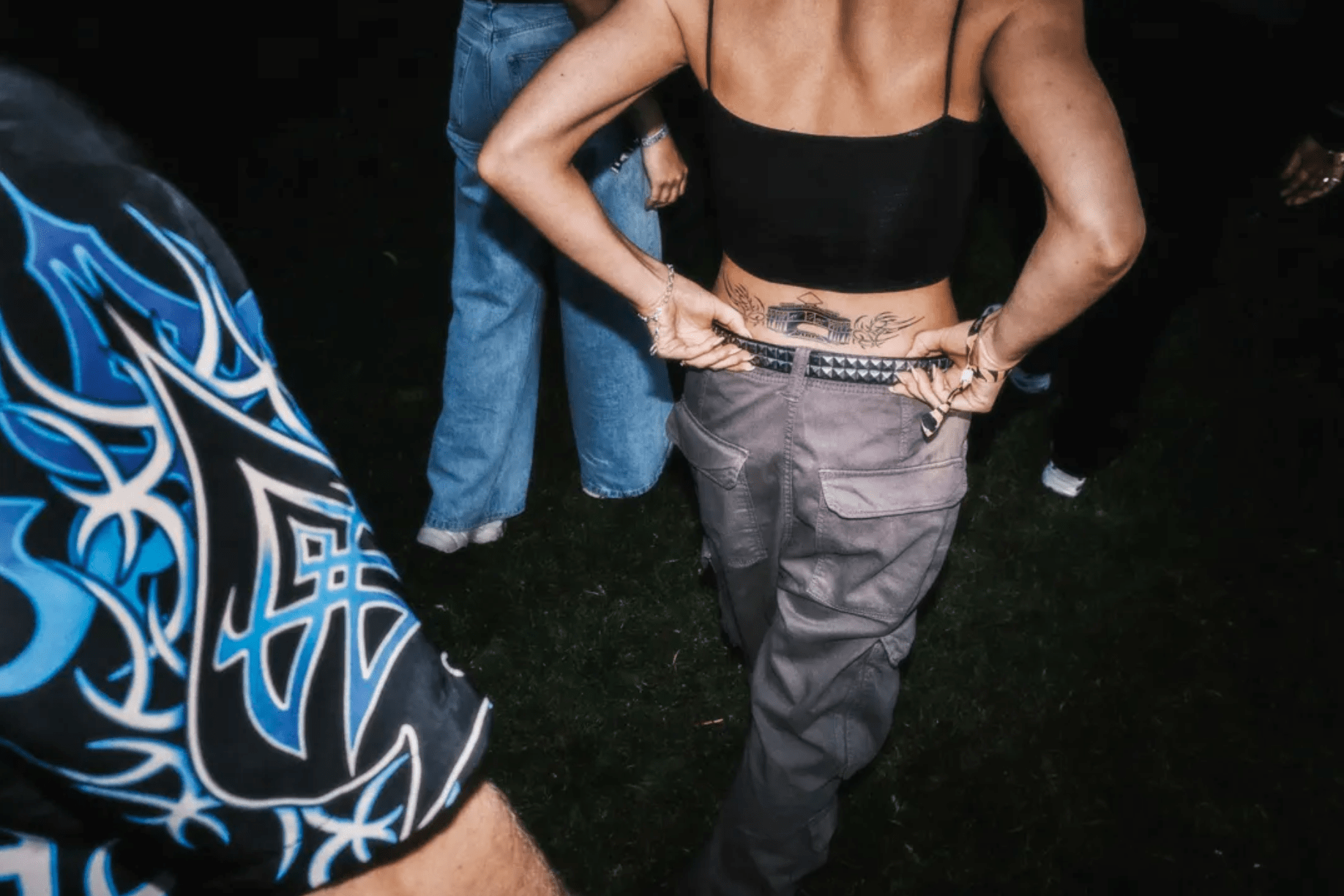 A 'tram stamp' on the back of a festival goer